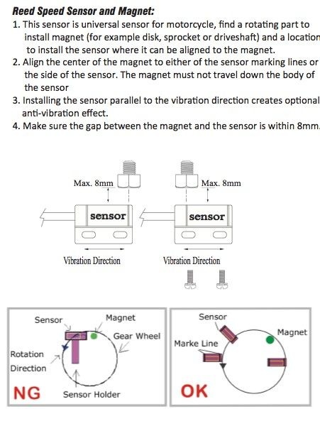 - Geschwindigkeitssensor: Reedsensor mit magnetischen Schrauben