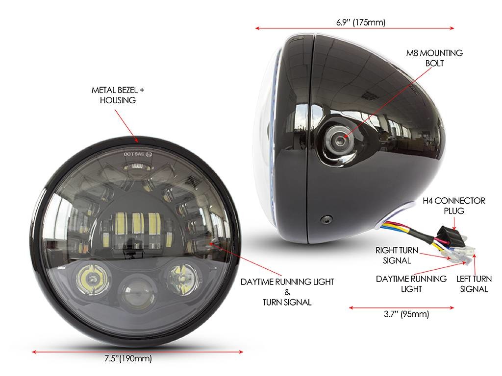 7 "Multi LED Scheinwerfer + Blinker Schwarz
