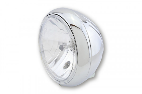 7 "Yuma 1 Scheinwerfer unten - Verchromt. Dieser hochwertige und E-gekennzeichnete Scheinwerfer hat ein sehr schönes Finish und ein Metallgehäuse. Der halbkugelförmige Scheinwerfer ist außerdem robust und einfach zu installieren.