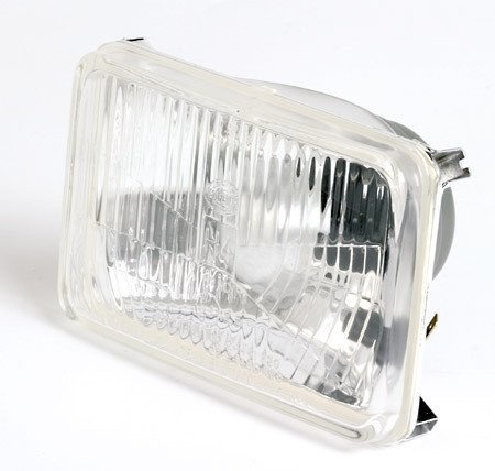 H4-Einsatz mit Standlicht, rechteckig, Linse m. Muster, 4 Abstandshalter auf dem Reflektor, E-Prüfzeichen