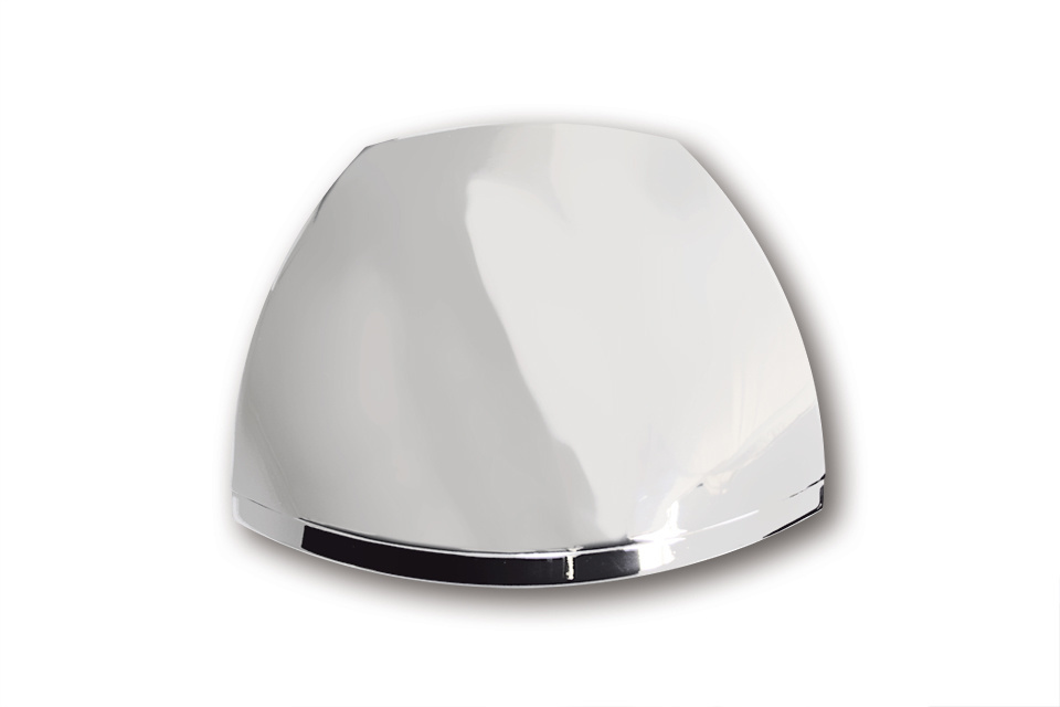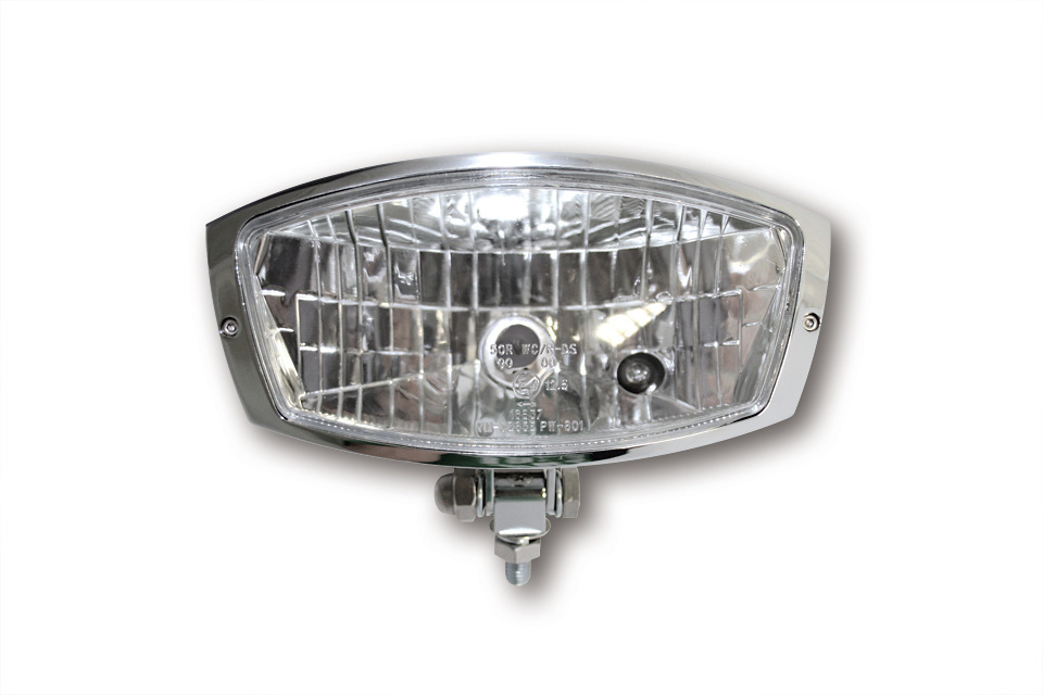 HIGHSIDER OREGON Scheinwerfer für untere Montage. Schwarzer oder verchromter H4-Halogenscheinwerfer mit Standlicht und verzinktem Metallgehäuse. Der Reflektor strahlt ein helles, symmetrisches Licht aus - für eine gute Straßenbeleuchtung und optimale Sicht. Der trapezförmige Scheinwerfer besticht durch seine weichen, geschwungenen Linien und das edle Hochglanzgehäuse mit E-Zulassung.