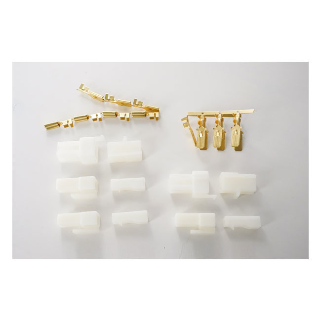 Dies ist ein universelles Hochleistungs-Steckverbinderset, mit dem jeder Standard-Gleichrichter-Reglerstecker ersetzt werden kann. Dies erhöht die Strombelastbarkeit um über 50%. Es wird dringend empfohlen, alle Klemmen mit den Drähten zu verlöten