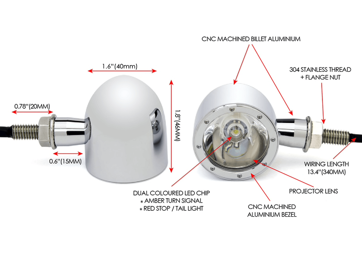 Integrierte CREE LED Blinker / Rücklicht CNC - Chrom
