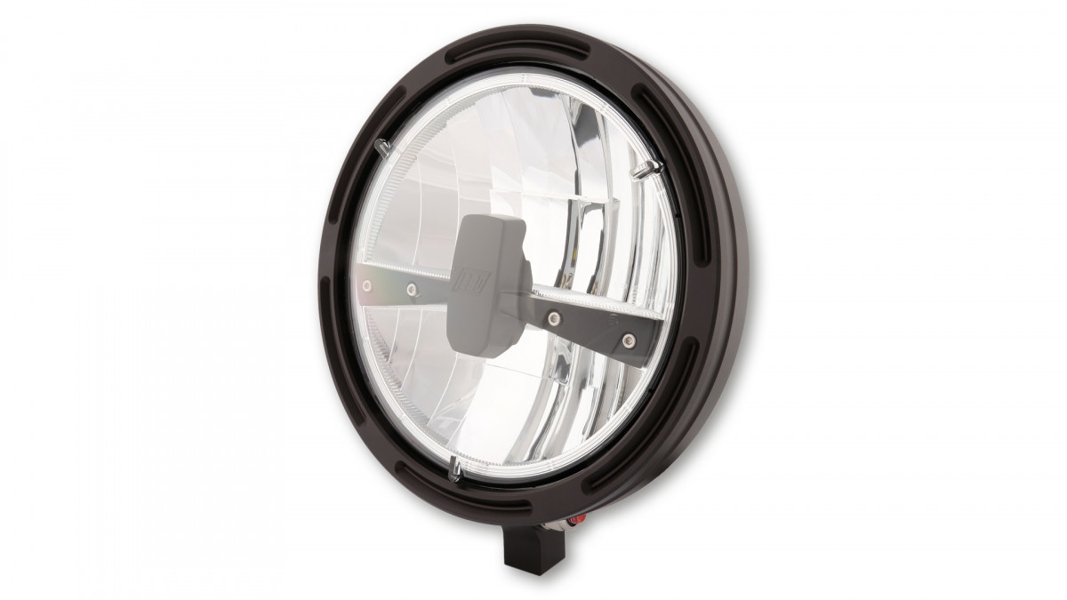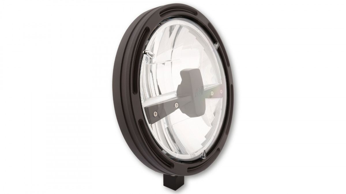 Jeder Zentimeter zählt, um den Scheinwerfer so eng wie möglich zwischen den beiden Standrohren in der Gabelung zu platzieren. REDUCED TO THE MAX war die Voraussetzung für die Entwicklung der innovativen Scheinwerferhalterung FRAME. Mit dem puristischen Aluminiumring ist es erstmals möglich, verschiedene LED-Scheinwerfereinsätze freistehend am Motorrad zu montieren. Der bewusste Verzicht auf ein Scheinwerfergehäuse ermöglicht eine unschlagbar schmale Einbaulage und sorgt zudem für eine bessere Kühlung der LED-Einheit.