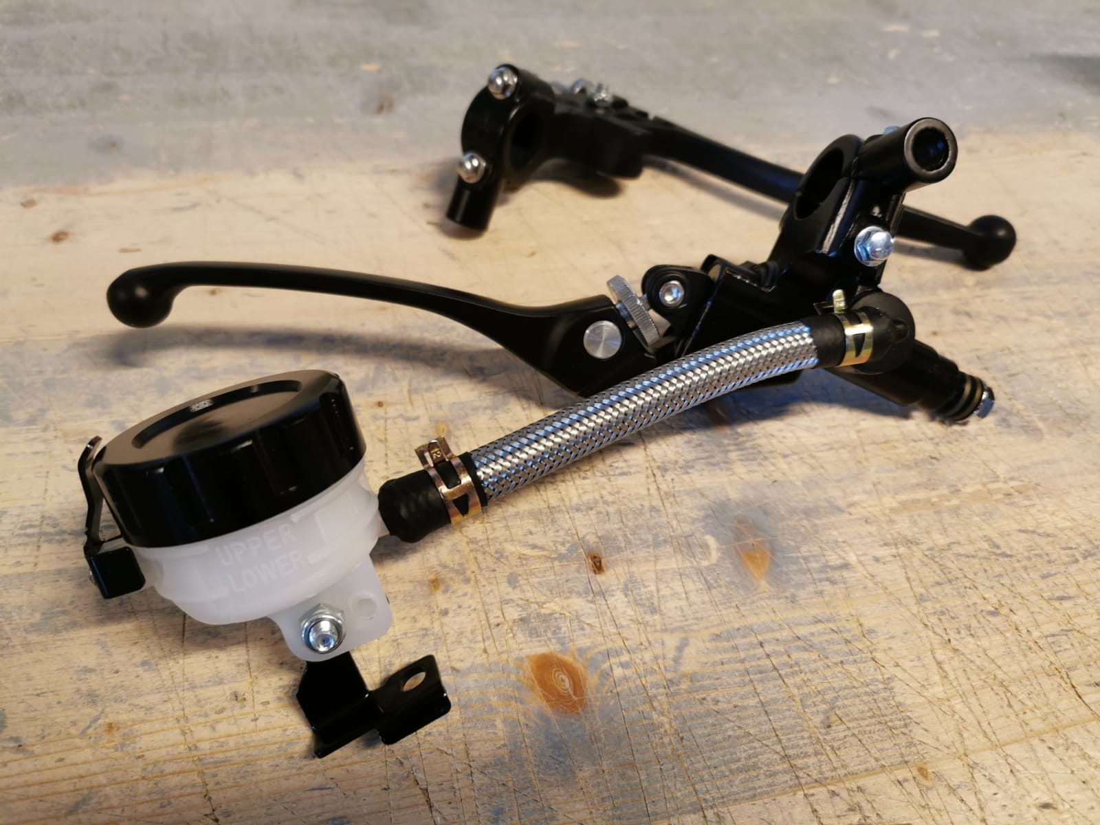 Modernes Sportbrems- und Kupplungsset 17mm. Schönes Kit mit einem 17 mm Kolben in der Bremspumpe. Nur für 1 Scheibe! Die Kupplung ist mechanisch.
