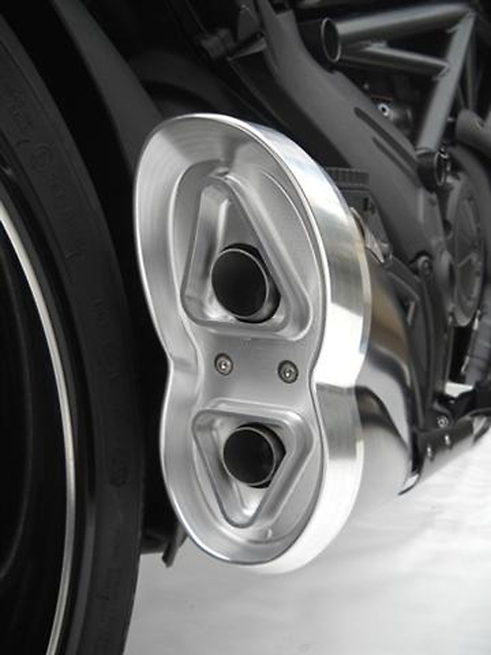 Schalldämpfer hinten Ducati Diavel, Edelstahl Schwarz, Slip-On, E-Markierung, Kat., Silberne Endkappe