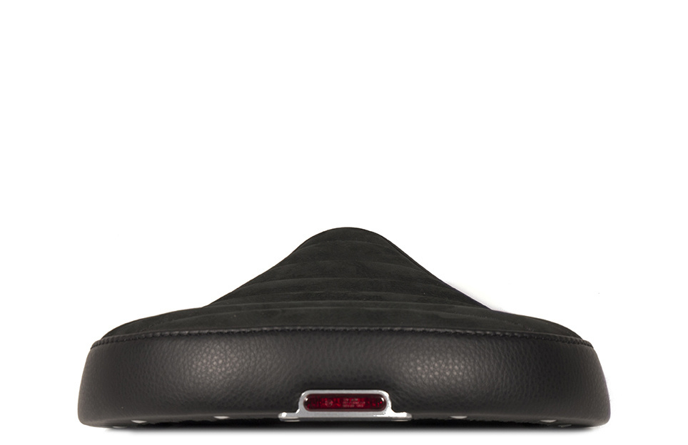 Soweit wir wissen, ist dies der einzige 'New-School-Bobber'-Sitz mit integriertem LED-Rück- und Bremslicht (mit E-Prüfzeichen), und wenn es nicht der einzige ist, ist es definitiv der am besten aussehende. Das kleine und integrierte Licht trägt zu einem sehr sauberen Aussehen Ihres Rades bei. Die Leuchte misst 40x8 mm und ist in einem speziell entworfenen, CNC-gefrästen Aluminiumträger geschlitzt, der an der Unterseite des Sitzes verschraubt wird. Die gesamte Verkabelung ist intern und kann leicht außer Sichtweite an Ihren Kabelbaum angeschlossen werden.