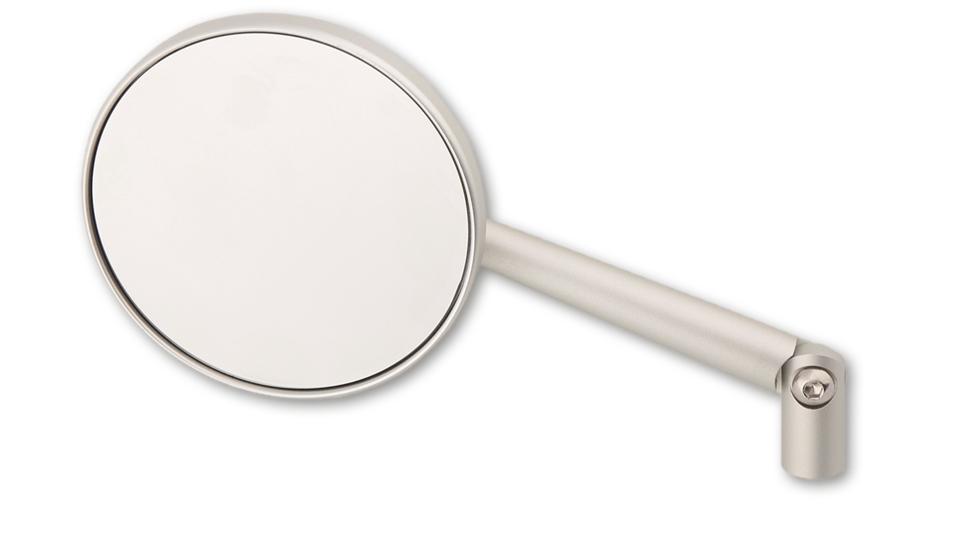 Heute ist wieder gestern. Denn auch heute ist der Rückgriff auf organische Formen, die es bereits gab, noch immer willkommen. Die LSL-Zubehörschmiede schmiedet in Form des Rückspiegels RETRO ein gekonntes Jonglieren mit der Balance von Form und Funktion. Da die Form des Spiegels auch eine perfekte Funktion gewährleisten soll, wurde bei der Entwicklung des Rückspiegels großer Wert auf die Materialauswahl und Dimensionierung gelegt. Das runde Rückspiegelgehäuse besteht aus Aluminium und die feinperlgestrahlte Oberfläche ist seidenmatt. Eine korrosionsbeständige Kugelklemme aus Edelstahl ermöglicht eine präzise Justierung des Spiegels. Der Spiegelkopf wird von einem Aluminiumarm getragen, der klassische M10x1,25-Adapter wird in die Lenkerhalterung geschraubt. Für Yamaha-Modelle mit Linksgewinde ist ein entsprechender Adapter im Lieferumfang enthalten.