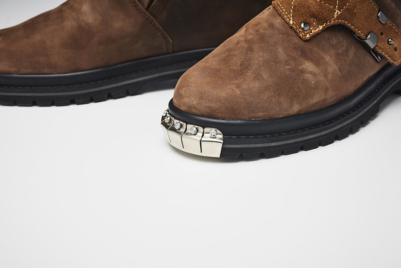 Die Konstruktion besteht aus natürlichem Crazy-Horse-Leder* mit Wildleder auf der Vorderseite.