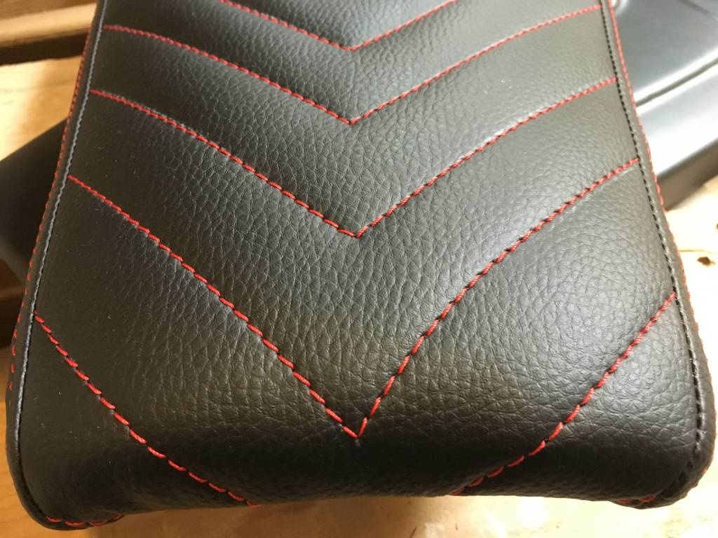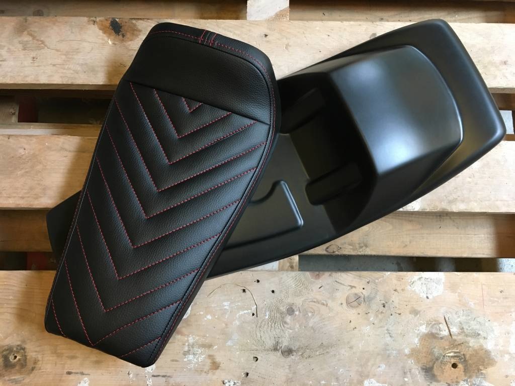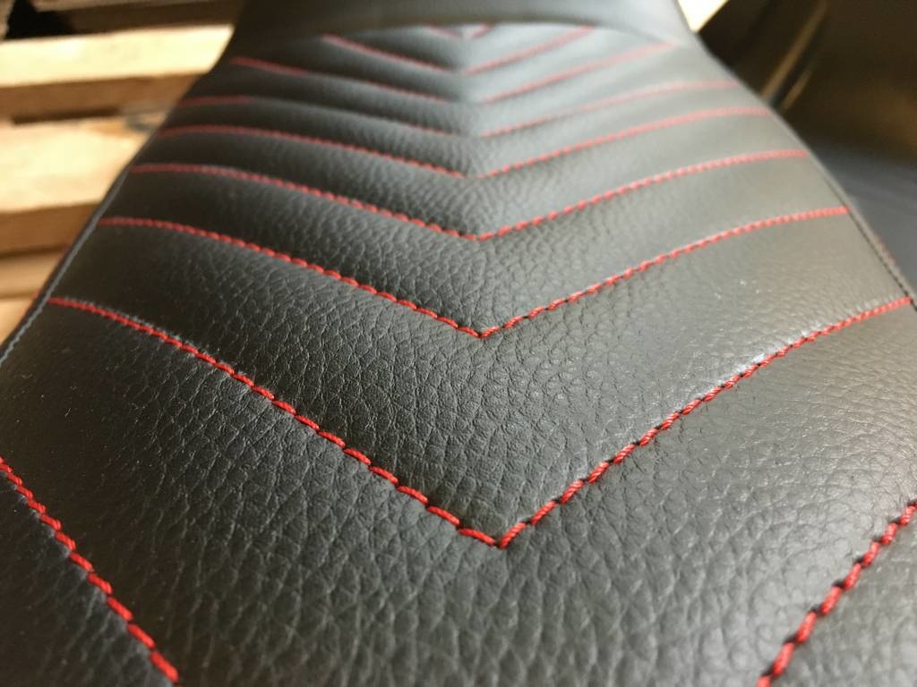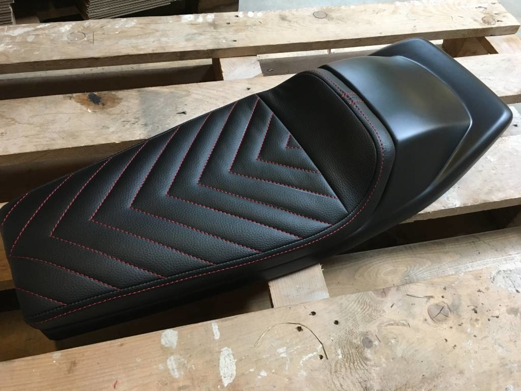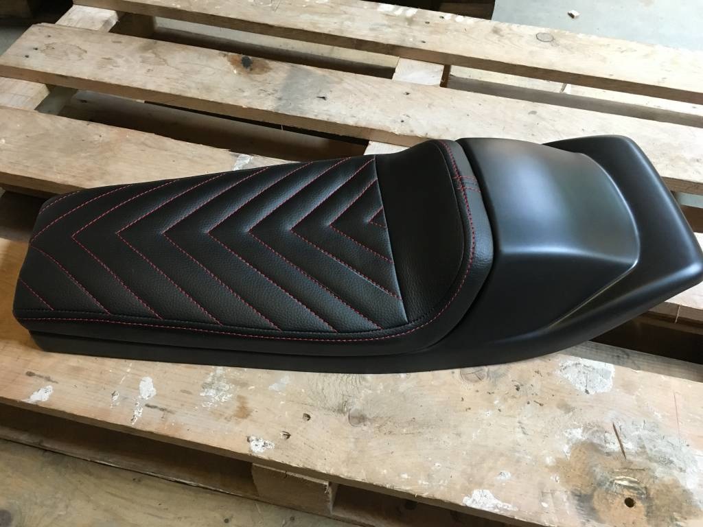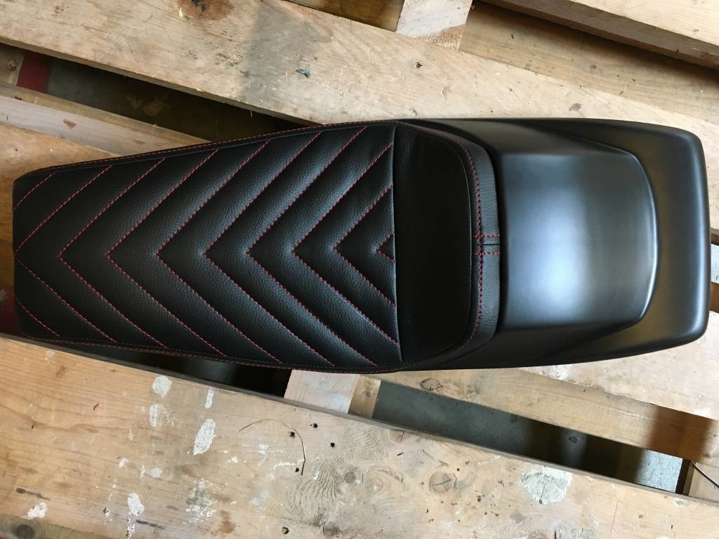 Cafe Racer Sitz schwarz Vintage Schwarz / Rot "V für Vendetta" 21 die Nähte auf der hübschen Sitz prüfen! Wir sind in der Liebe ... Sie? Hör zu! Dieser Sitz hat , dass die klassischen Flat Track Spoiler! Ziemlich selten!