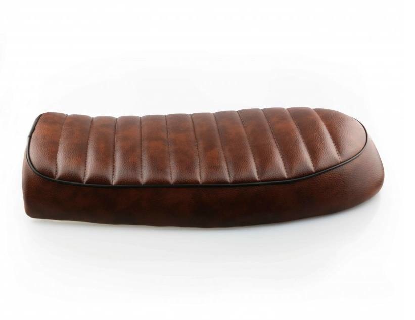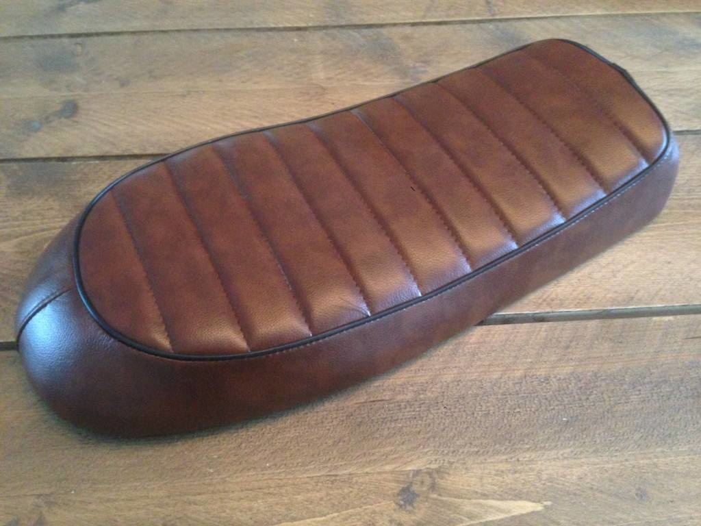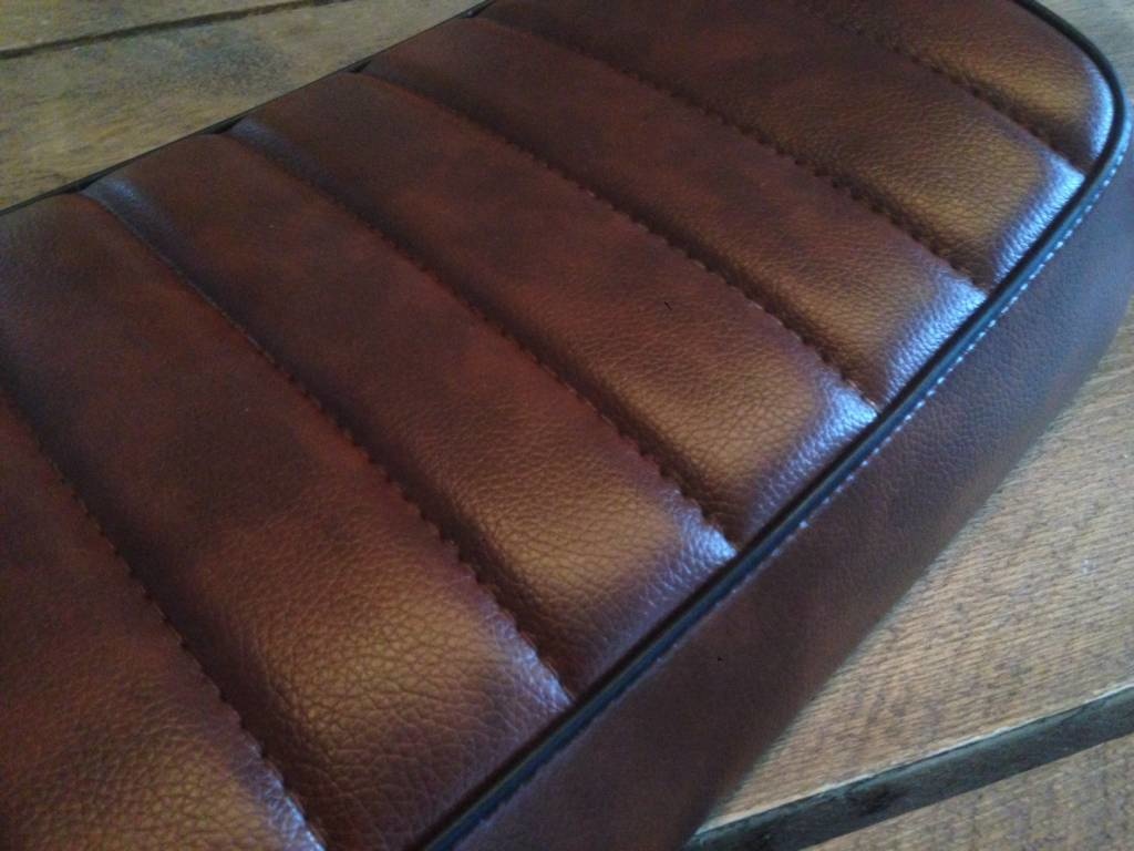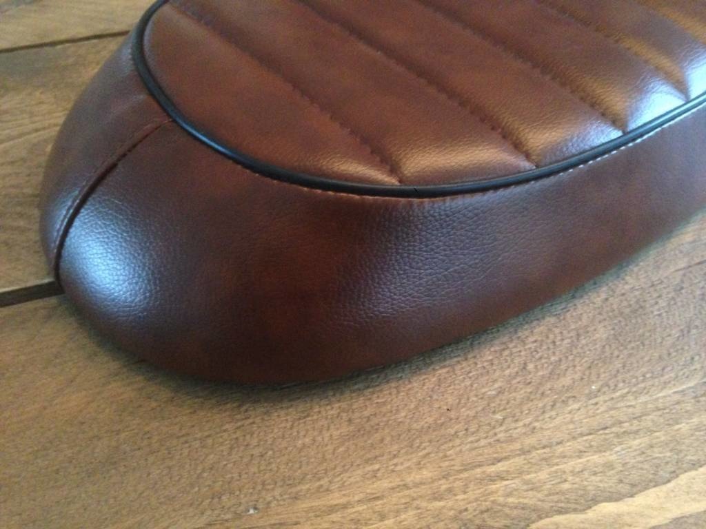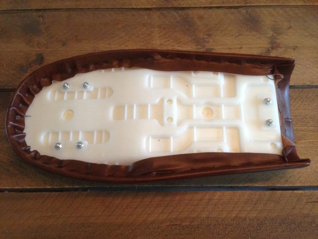 Geliefert wird mit passenden Universalhaltern. An der Unterseite der Kunststoff Schale befinden sich die passenden Gewinde zum anschrauben der Halter. Bezogen ist die Sitzbank mit Braunen Kunstleder