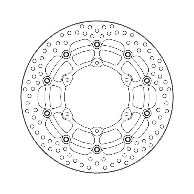 Die Moto-Master HALO-Bremsscheibe verfügt über einen hochwertigen Edelstahl-Außenring, der Hochleistungsbremsen ermöglicht und gleichzeitig extrem langlebig ist. - Die genaue Größe und Position der Entlüftungsöffnungen gewährleistet eine gleichmäßige Wärmeableitung unter hoher thermischer Belastung, während die Bremsbelagkontaktfläche gleichmäßig gereinigt wird. - Der lasergeschnittene und präzisionsgeschliffene Außenring ist an einem CNC-gefrästen Flugzeug-Aluminiumträger aus Billet befestigt, der schwarz eloxiert und laserbeschriftet ist. - Leichte Schwimmer aus Edelstahl. - TÜV genehmigt.