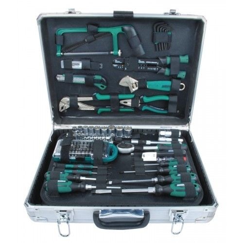 Greenline -Serie, so professionelle Qualität und extrem genau. Aluminium-Werkzeugkoffer , gefüllt mit 75-teiliges Set von Qualitätswerkzeugen .