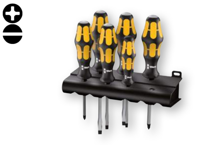 The 6 screwdrivers from the 932/6 Chisel / Impact Screwdriver Set from Wera are all equipped with an impact-resistant head and in adjustable rotation resistance so you can choose the right adjustment for every job.