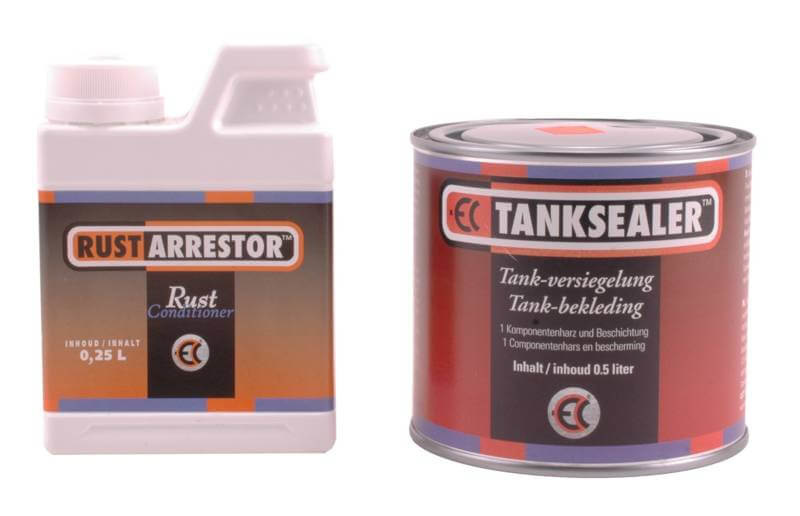 El depósito debe estar bien seco antes de utilizar el Rust Arrestor en él. Agitar bien para que el producto llegue bien a todos los puntos de óxido. A continuación, deje reposar el depósito, poniéndolo en una posición diferente cada 2 horas para que el producto pueda actuar. Repita esta acción hasta que haya dado la vuelta al depósito. A continuación, puede verter el Rust-arrestor de nuevo en el recipiente, posiblemente filtrado (por ejemplo con filtros de café). Deje que el tanque se seque bien, ya que el tiempo de curado es de al menos 24 horas.