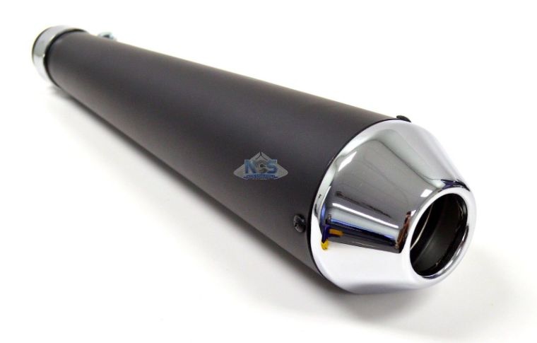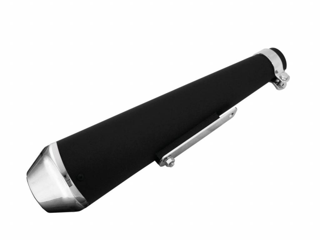 Megaton Reverse Cone 17" Black With Chrome EndUniversal 17" Chrome reverse cone shorty megaphone silencer.