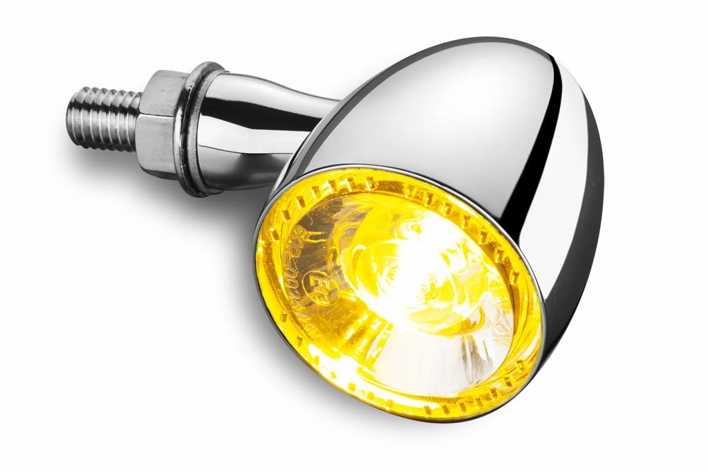The Bullet 1000® was created with a clear goal: a turn signal with the classic bullet look and a classy Kellermann design, but equipped with modern LED technology. A newly developed light technology (Kellermann-HPT®) creates a homogenous ring of light. Design quality is not only a question of shape and surfaces but also a result of the complete look and feel when the lights are on. The high-quality metal housing with a maximum diameter of 39 mm is like a jewel on the motorcycle. It is available in chrome, black and matte chrome. The Bullet 1000® works with any sophisticated bike design. The Bullet 1000® comes in four different technical versions: Extreme turn signal, turn signal with yellow position light, turn signals with white position light and turn signal with tail and brake light.
