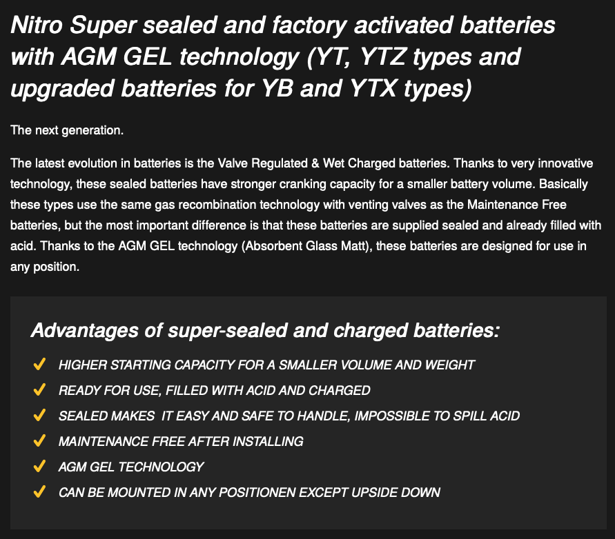 YB14A-A2 Super Sealed Battery