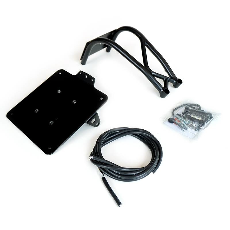 Ce produit comprend des fixations pour le support de plaque, que vous pouvez monter sur votre cadre d'origine ou tout autre cadre. De plus, un éclairage à LED pour la plaque d'immatriculation est aussi compris avec un câble extra long conçu pour être installé à l'intérieur du tube.