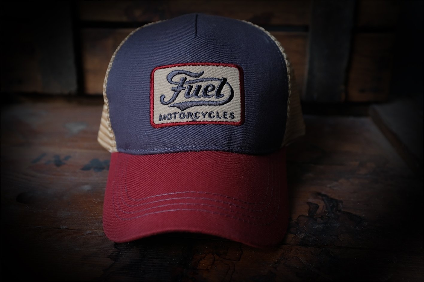 Inspiré de la mécanique des stations-service américaines des années 1950, il présente un panneau avant de couleur denim, un bord rouge contrastant et un écusson brodé Fuel Motorcycles.