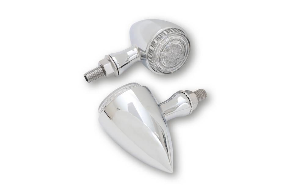 Clignotants Power LED avec boîtier en aluminium chrome, homologué pour l'Union européenne.
