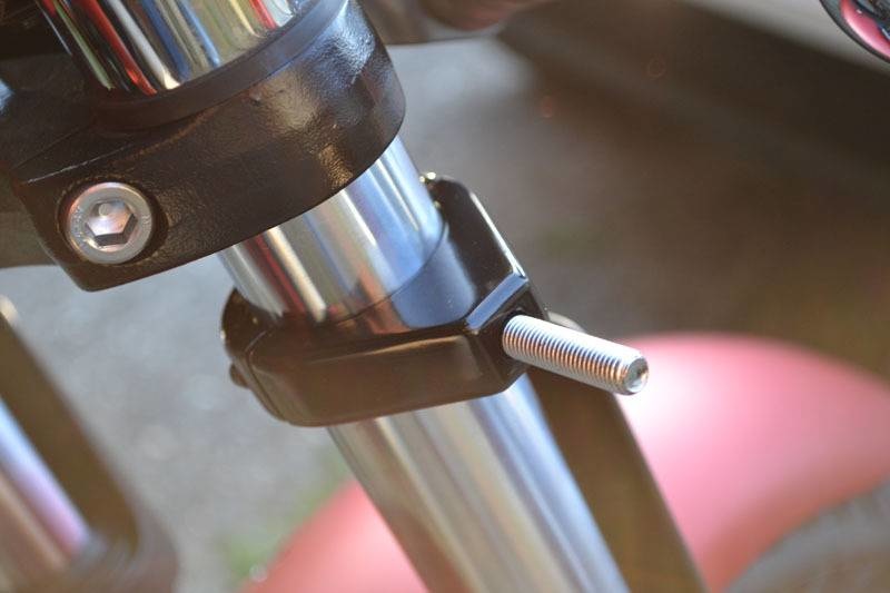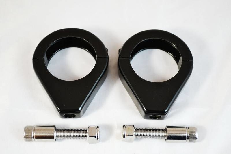 Il s'agit d'un kit complet pour déplacer vos feux clignotants avant. Ces colliers conviennent aux motos avec une fourche de 41 mm de diamètre. Ce genre de produit est souvent utilisé sur des Harley Davidson, Triumph et BMW.
