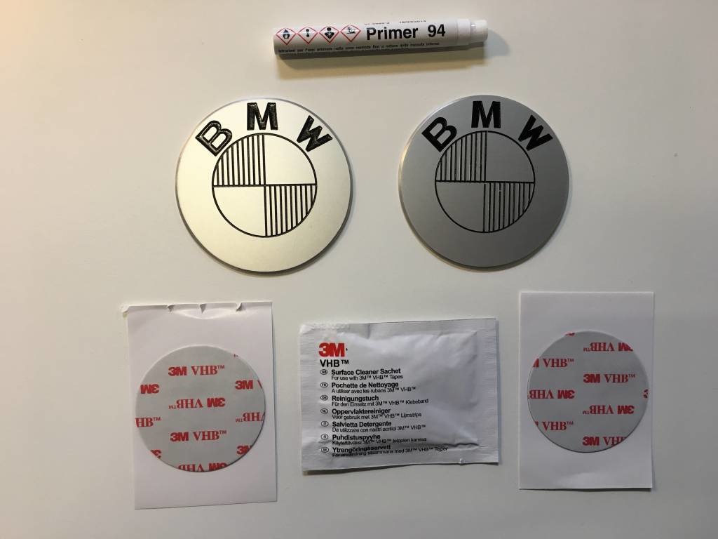 Le prix comprend deux emblèmes avec apprêt, nettoyant et autocollant.