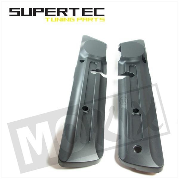 Ensemble de cache latéral pour Vespa Citta de la marque Supertec. De couleur noire.