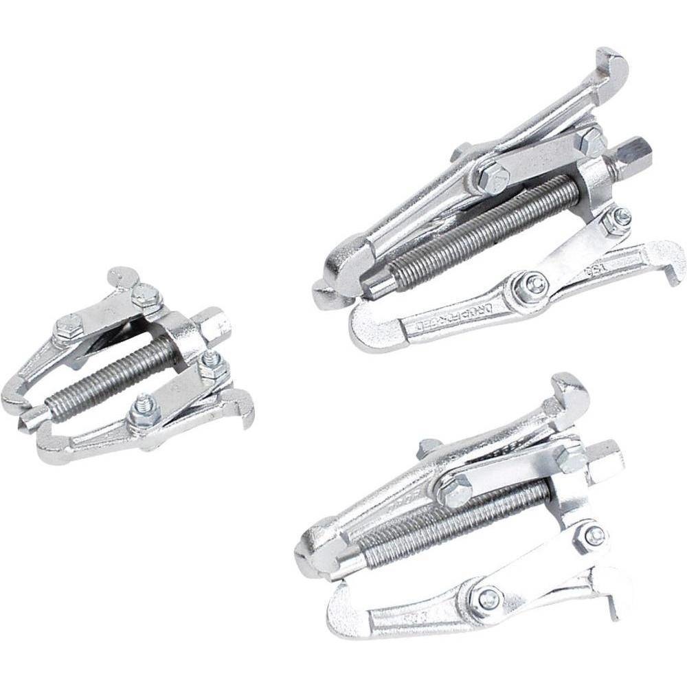 L'ensemble se compose d'un extracteur de roulements à 2 bras avec une profondeur de serrage de 75 mm, pour le travail fin, d'un extracteur de poulie à 3 bras avec une profondeur de serrage de 100 mm et d'un extracteur de poulie à 3 bras de 150 mm, pour les travaux lourds ! Cet ensemble est un bon complément à tout atelier ou garage !