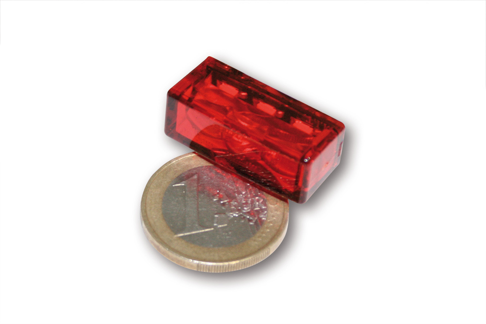 Boîtier en plastique rouge très discret avec technologie LED SMD. Cette technologie LED résistante à l'usure et puissante avec une lentille spécialement adaptée est plus brillante que les LED normales à la même consommation d'énergie et permet un design extrêmement petit et plat. Vous serez étonné de voir à quel point la puissance et la luminosité proviennent des petites LED SMD. L'indicateur a été testé pour un montage horizontal et convient au laminage ou au collage, testé E.
