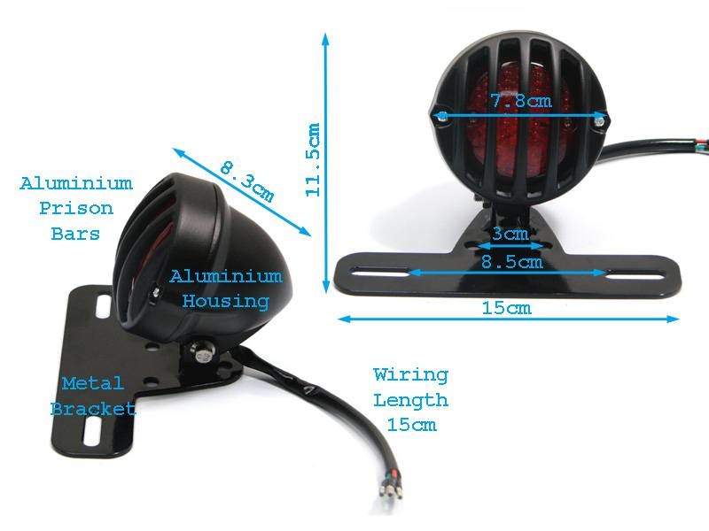 Feu arrière à LED en aluminium noir "Prison" avec support de montage