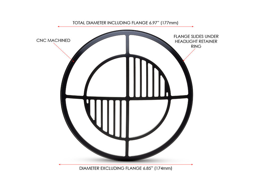 Cette grille de phare d'excellente qualité est un ajout magnifique qui se monte directement sur votre phare de 7".
