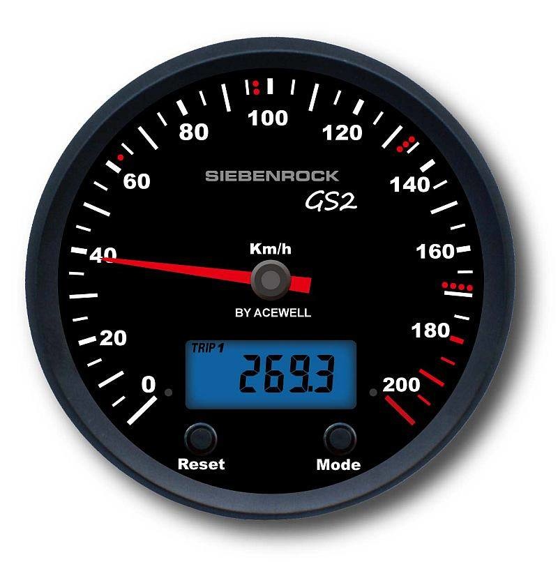 L'indicateur de vitesse GS2 est un appareil rond avec une aiguille classique, un écran numérique et d'autres caractéristiques.