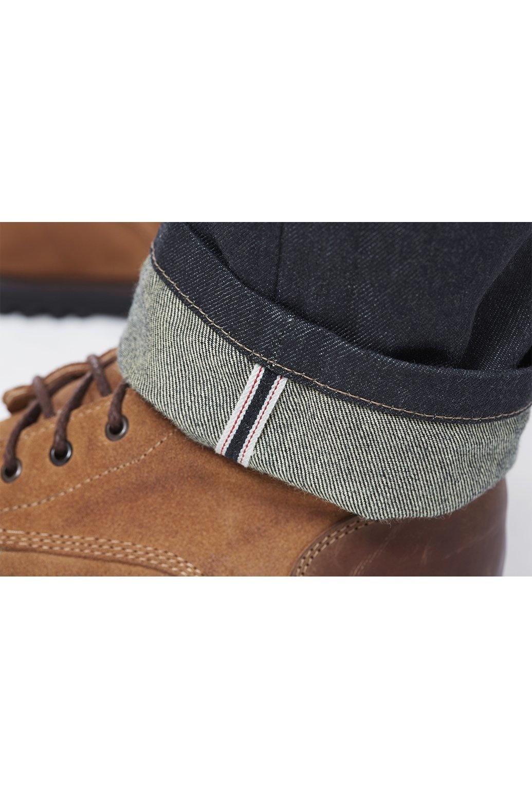 - Couche unique 14oz. Denim lisière mélangé à de l'aramide