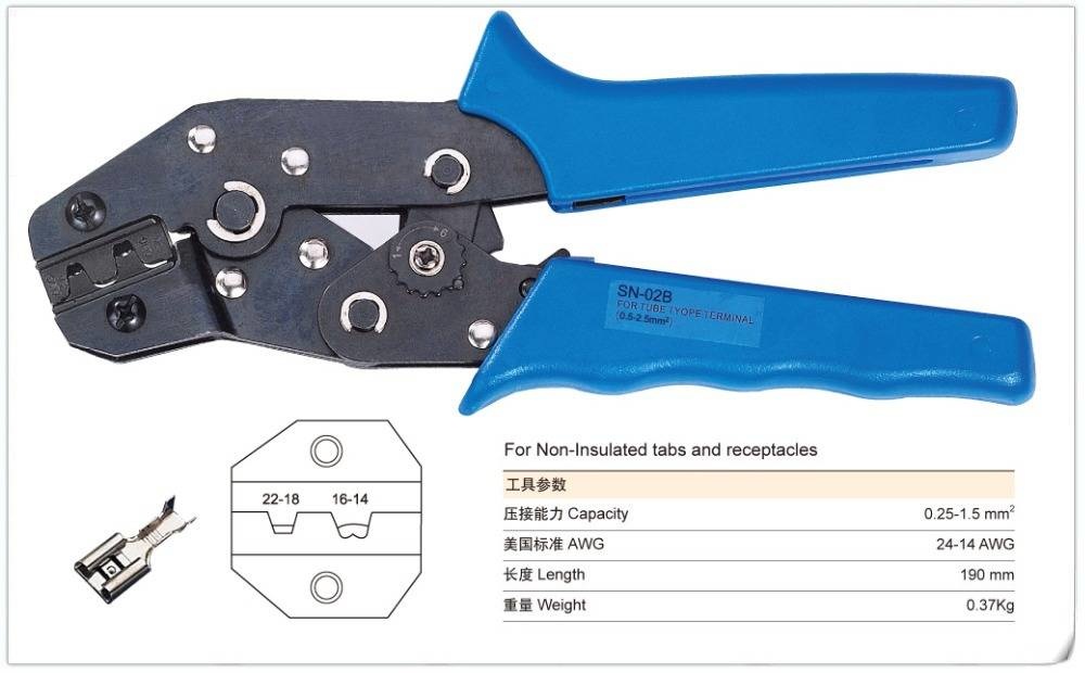 Pince à sertir premium pour les connecteurs à sertir de 4,8mm à 6,3 mm, 24-14 AWG. Il s'agit d'un outil très pratique et indispensable dans votre garage !