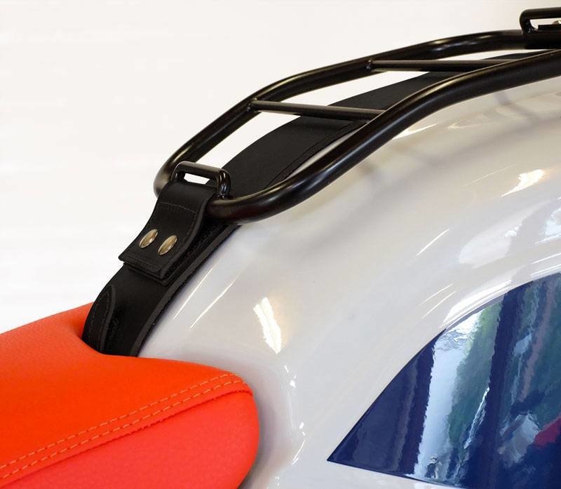 Remarque : les deux sangles en cuir permettant d'attacher des objets sur le porte-bagages ne sont pas incluses et sont vendues séparément (disponibles en noir et en brun).