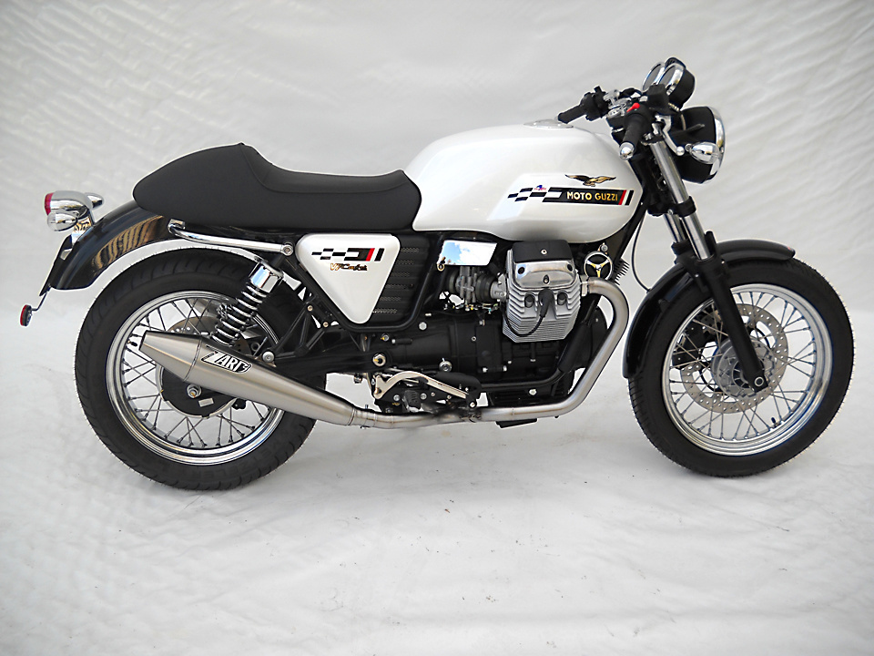 Pot d'échappement Moto Guzzi V7 Cafe Racer / Cafe Classic, Inox, slip on 2-2, E-Marked, + Cat.