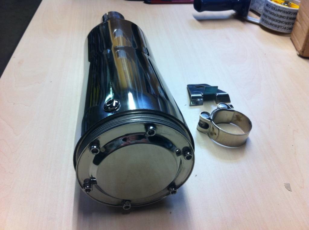 Ce pot d'échappement est livré avec un collier de serrage et son support.