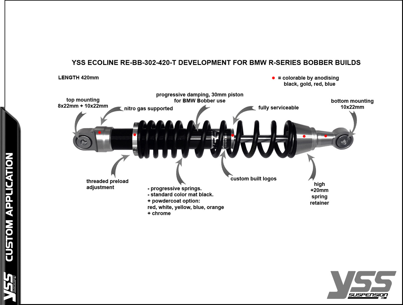 RE302-420T pour BMW Série R à double amortisseur Bobber 420mm