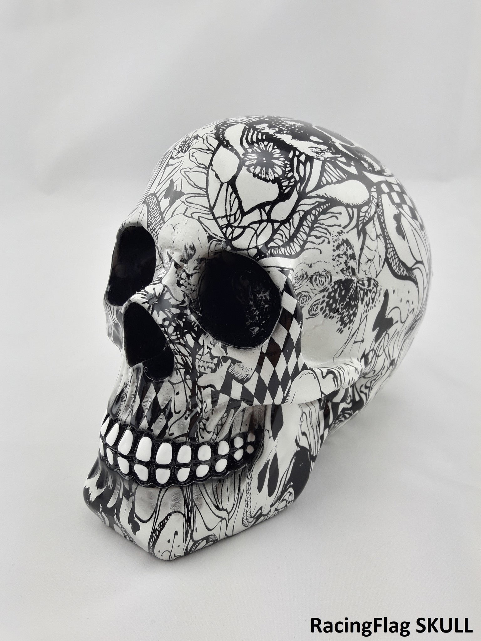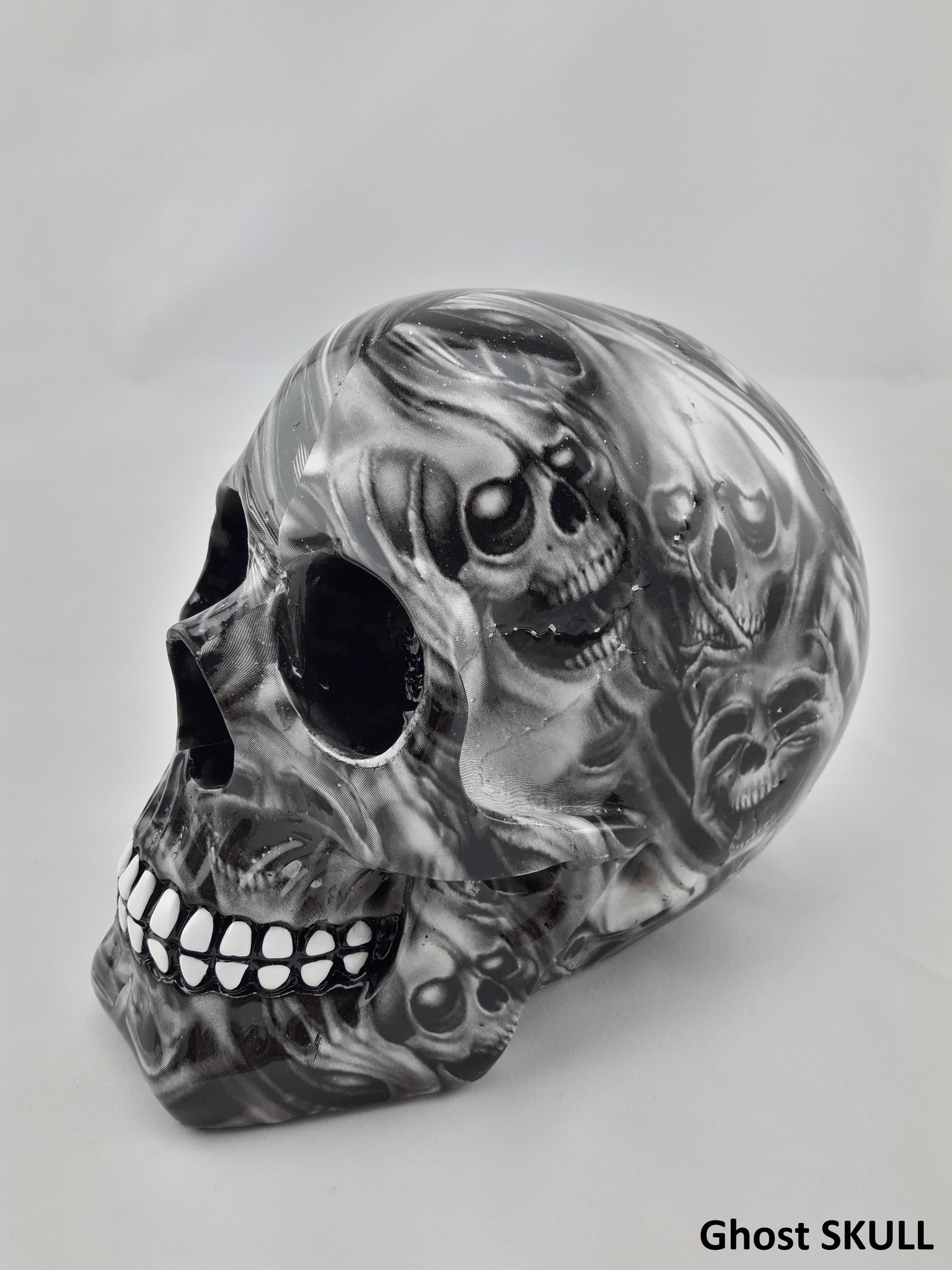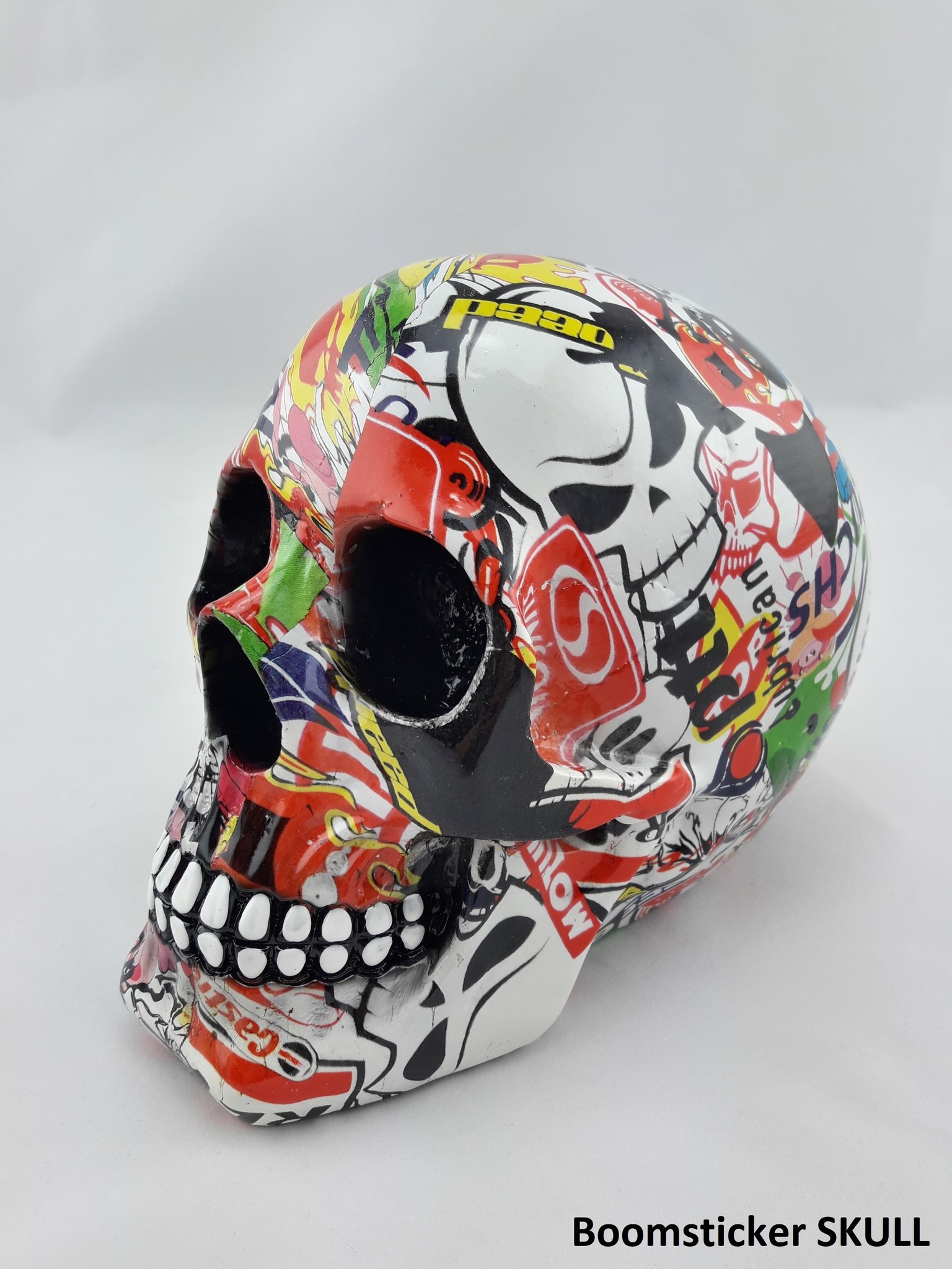 Support de casque "Skull" (divers modèles). Fabriqué à la main, ce produit peut parfois varier quelque peu en apparence. Nous proposons actuellement 2 options : Boom Sticker et Racing Flag.