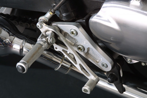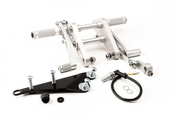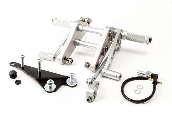 La conception de ces commandes reculées s'inspire de la construction de ponts. En fabriquant chacune des pièces de ce kit avec cela en tête, on obtient des commandes reculées à la fois robustes et légères, tout en étant particulièrement magnifiques. Les repose-pieds et les leviers sont fabriqués à partir d'aluminium d'excellente qualité. Afin d'éviter le jeu de leviers et des roulements, nous utilisons des brosses en PTFE durables. Ces kits de commandes reculées vous offrent donc la possibilité de changer de vitesse avec précision. Même lorsque vous prenez des virages serrés, les repose-pieds repliables vous offrent une sécurité optimale en touchant le sol (en option).