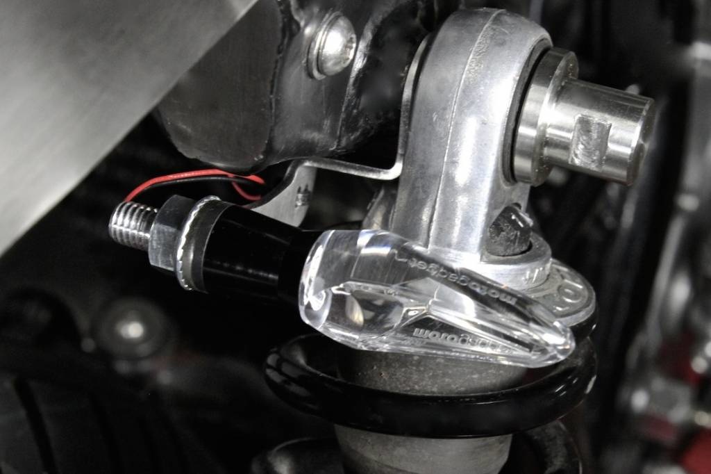 Plug & Play. Montez tout d'abord vos clignotants sur vos nouveaux supports. Ensuite, utilisez les serre-câbles fournis pour faire une boucle à travers la fente des supports. Guidez vos câbles à travers la boucle et fixez solidement le serre-câbles. Les supports peuvent alors être montés via l'arrière du cadre sur les boulons supérieurs de l'amortisseur.