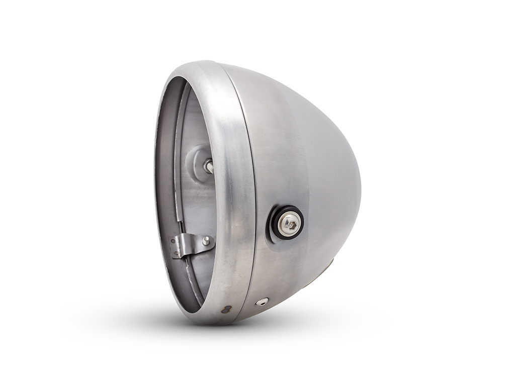7 Inch Raw Unpainted Metal Headlight Housing + Bezel. High quality raw unpainted side mount headlight housing set for bike builders and DIY applications. Ready to paint to the color of your choice or go for the Patina unpainted look.