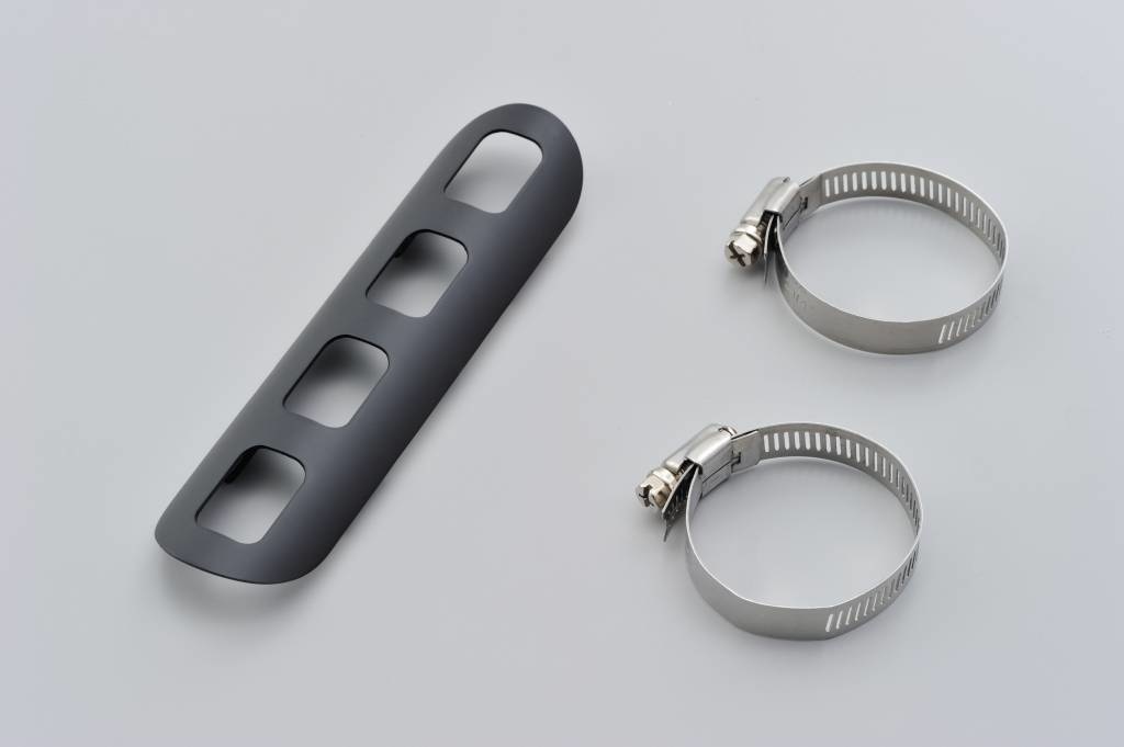 This narrow type exhaust pipe protection prevents burns caused by the heat of the exhaust pipe. The exhaust pipe largely corresponds to the exhaust system with different outer diameter for the clamps. The exhaust pipe outer diameter is 33 to 61 mm, so it can be used on various motorcycles, from Minibikes to Harleys. If used in combination with heat insulation materials, it ensures there is no heat loss at the exhaust.