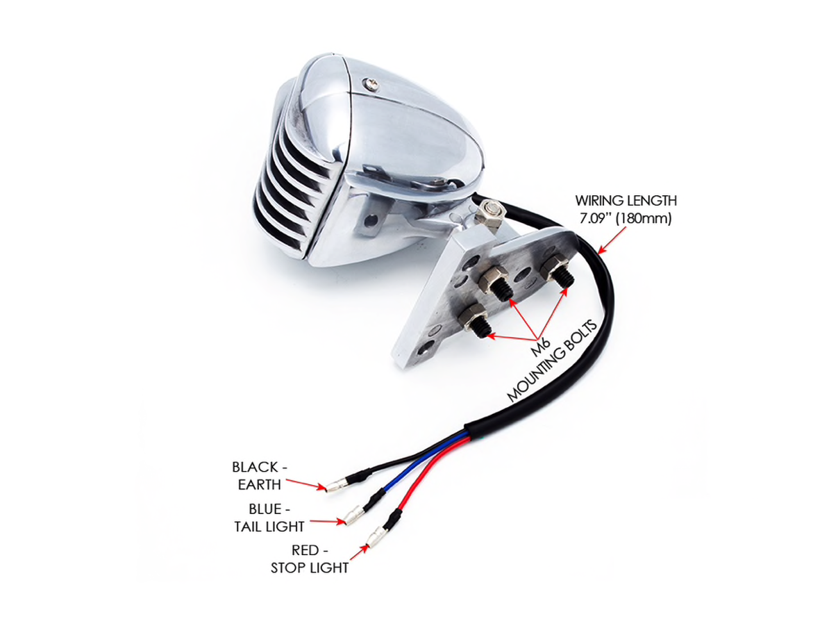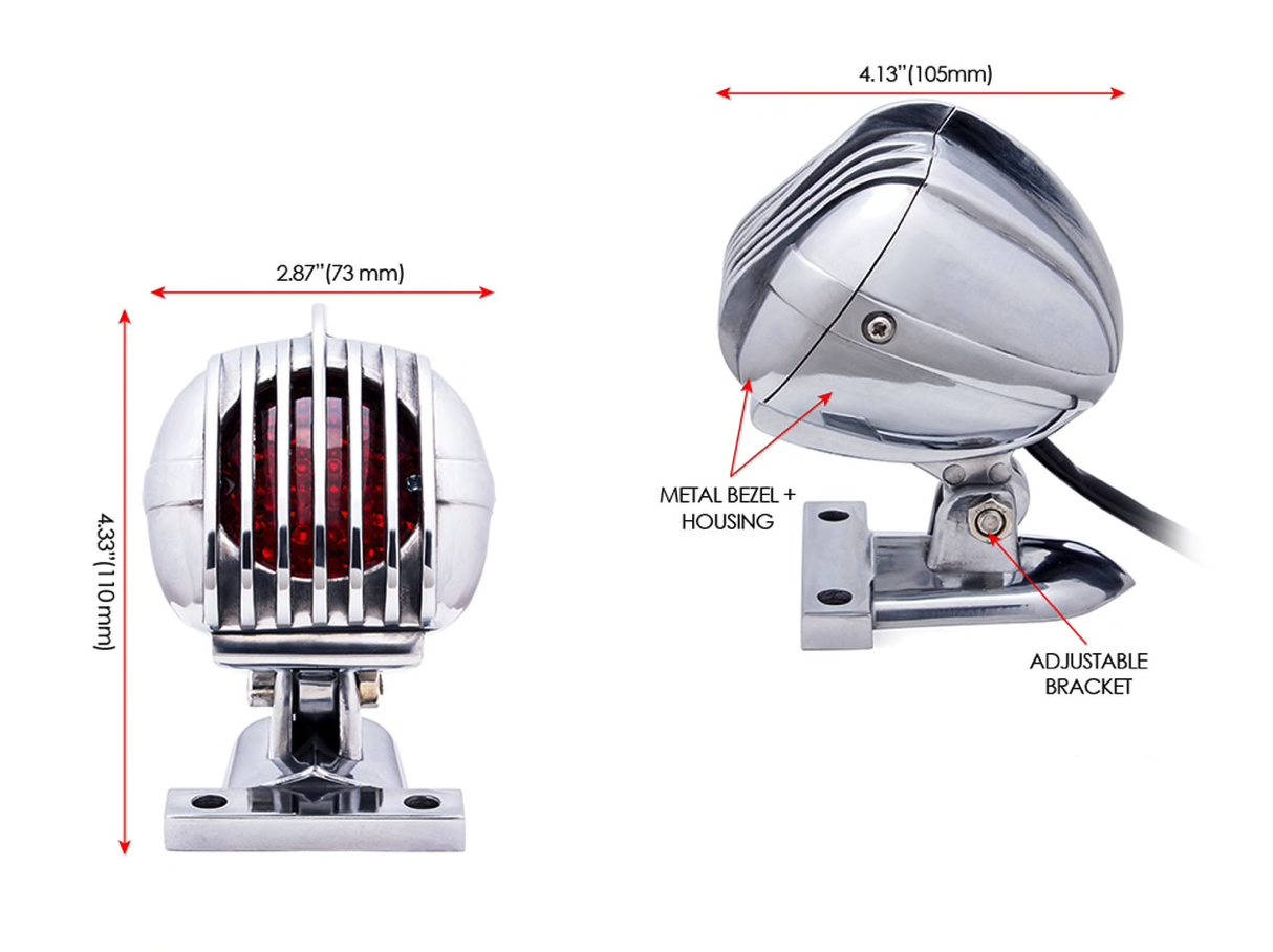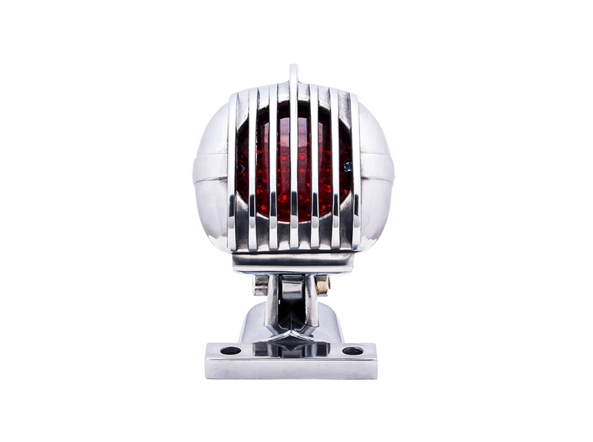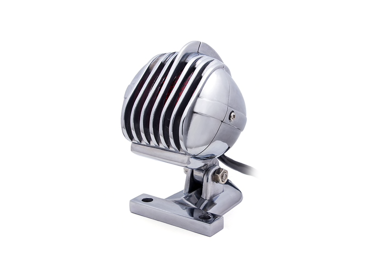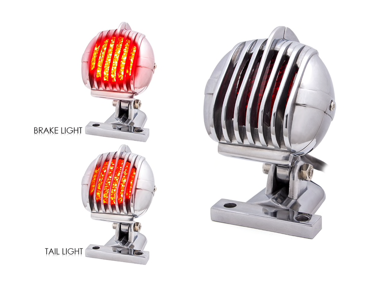 Prison Retro Grill LED Rear Light Red / Polished. Very nice light with a very neat finish. This rear light is adjustable in height and looks great on both chop