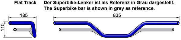 22MM Flat Track Stuur Staal - Zwart Type L14