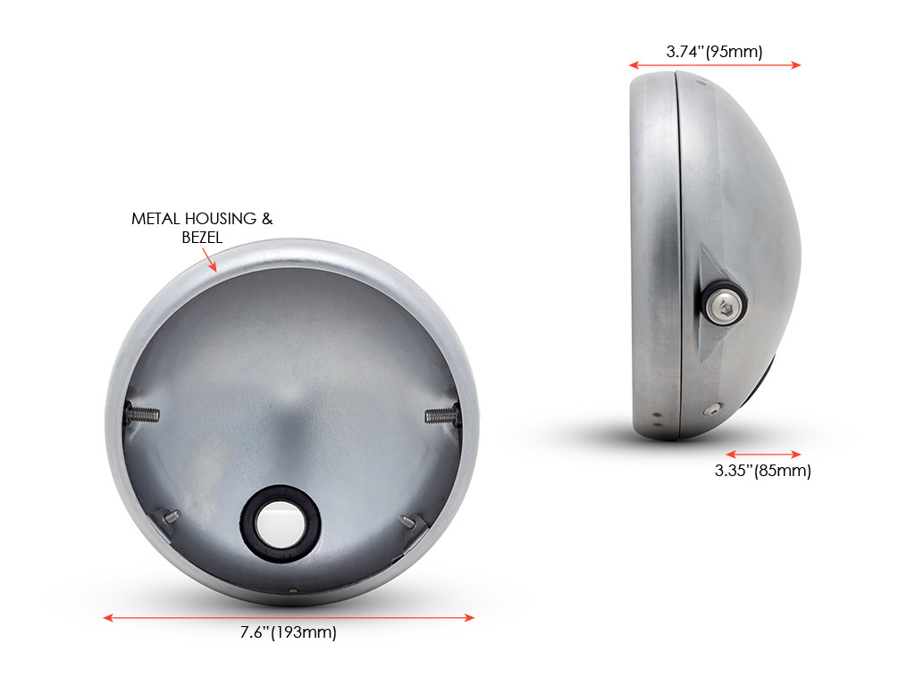 7 inch Onbewerkte metalen koplamp behuizing Shorty. Hoogwaardige onbewerkte ongelakte koplamp behuizing set voor doe-het-zelf-toepassingen. Klaar om te spuiten naar de kleur van je keuze of ga voor de Patina look.