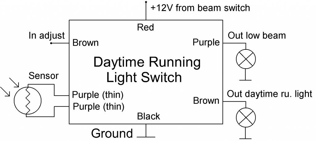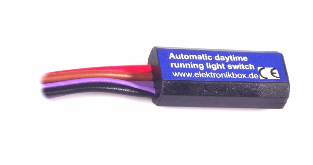 Dit elektronische relais bevat 2 vermogensuitgangen die elk 60 Watt kunnen schakelen. Een daglichtsensor detecteert of het buiten donker of helder is en het apparaat schakelt tussen dagrijlicht en dimlicht, afhankelijk van het omgevingslicht