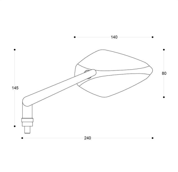 - Barracuda Naked achteruitkijkspiegels hebben een universele 10 x 1,25 mannelijke aansluiting en worden bevestigd aan de bedieningsblokken van het stuur (rechts schroeven).