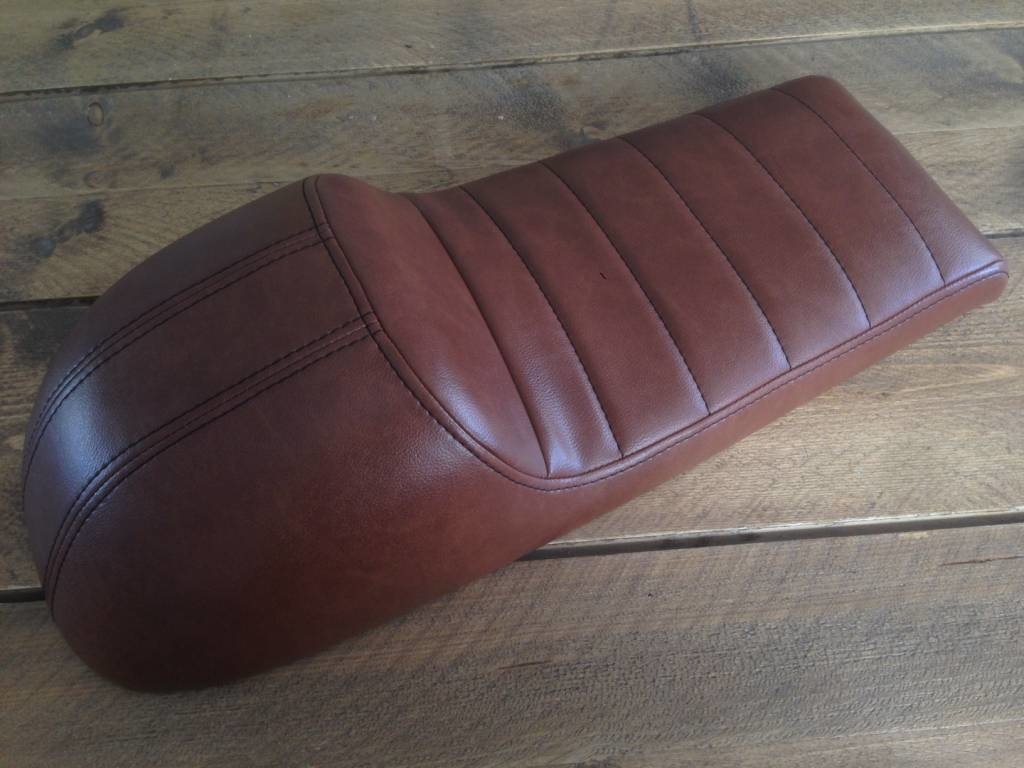 Cafe Racer Seat Tuck N' Roll Vintage Brown 76. Dit zitje is volledig bekleed en straalt klasse uit. Heel netjes gestikt en een warme mooie kleur bruin.